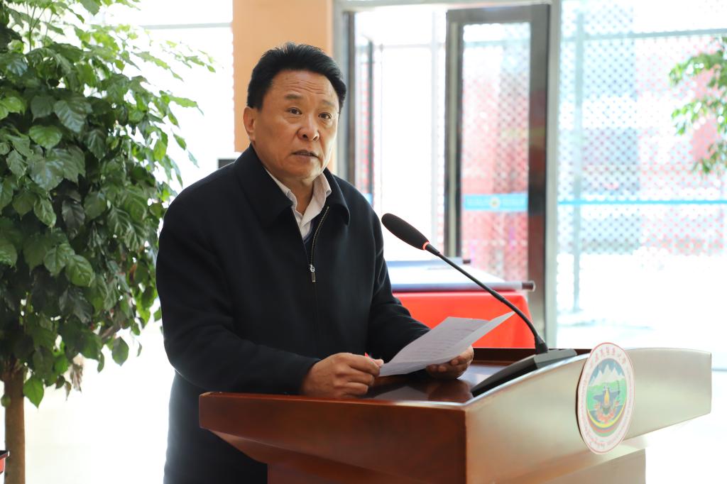 仪式上,次色珍首先介绍了莅临现场的嘉宾,对各位的到来表示热烈欢迎与衷心感谢。随后,米玛校长发表致辞,深刻阐释了图书馆作为高校“文化地标” 与 “精神殿堂” 的核心价值,强调新馆不仅是文献查阅的空间,更是藏医药文脉传承、现代医药知识传播、产学研用融合的重要平台。校长在致辞中回顾了新馆建设的艰辛历程 —— 从老校区对典籍的悉心守护到新馆功能升级,从14 万余册图书(含藏医药特色文献)的分类上架到智能服务系统的调试优化,背后离不开校领导的远见规划、工作人员的日夜辛劳与各部门的通力协作,并对全体师生提出殷切期望,希望大家以图书馆为求知加油站、学术会客厅、创新孵化场,深耕学问、笃行致远。