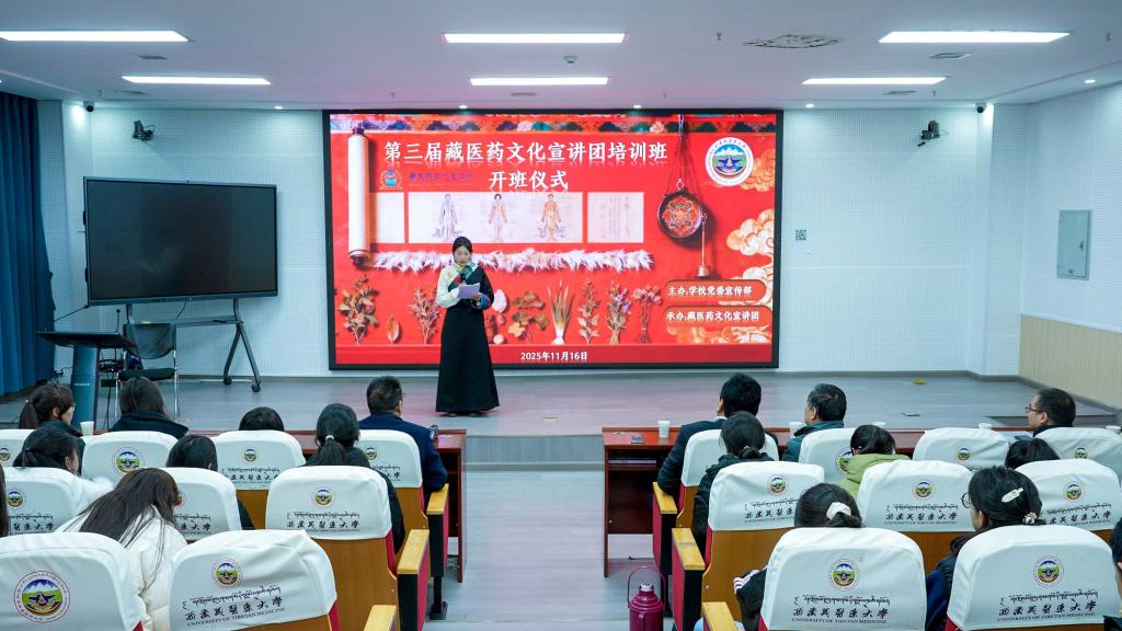为深入贯彻落实新时代党的治藏方略,推动藏医药文化的传承创新与传播发展,2025年11月16日,西藏藏医药大学藏医药文化宣讲团第三期培训班举行开班式。学校党委副书记王斌礼出席开班式并讲话,校党委委员、宣传部部长边巴次仁主持仪式,校党委宣传部有关同志,藏医药文化宣讲团指导老师代表及宣讲团全体成员参加仪式。