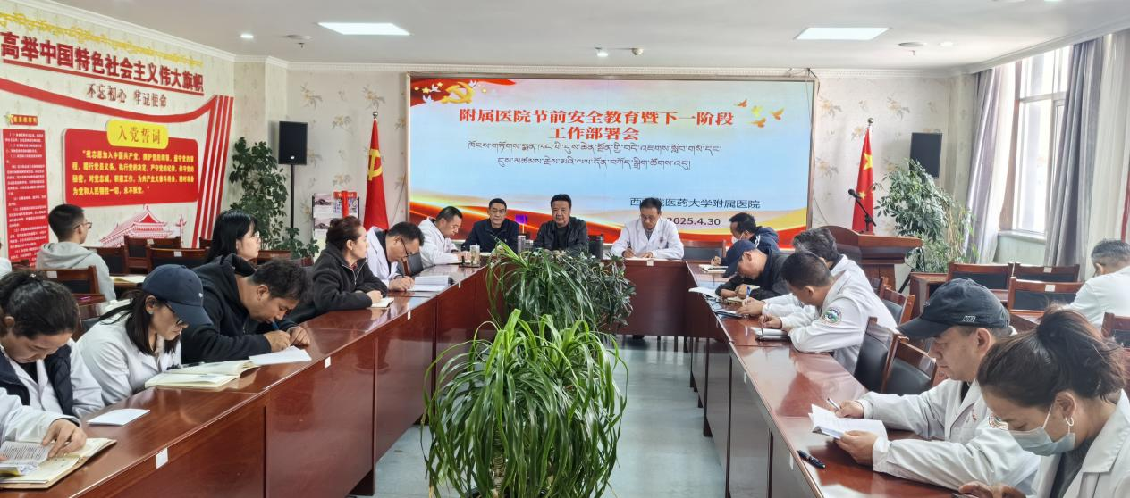 为确保医院各项工作安全、有序、高效运行,4月30日,西藏藏医药大学附属医院召开节前安全教育暨工作部署会议,党总支书记达娃平措主持会议,院长仁青加、副院长白玛罗布及全体职工参加会议。