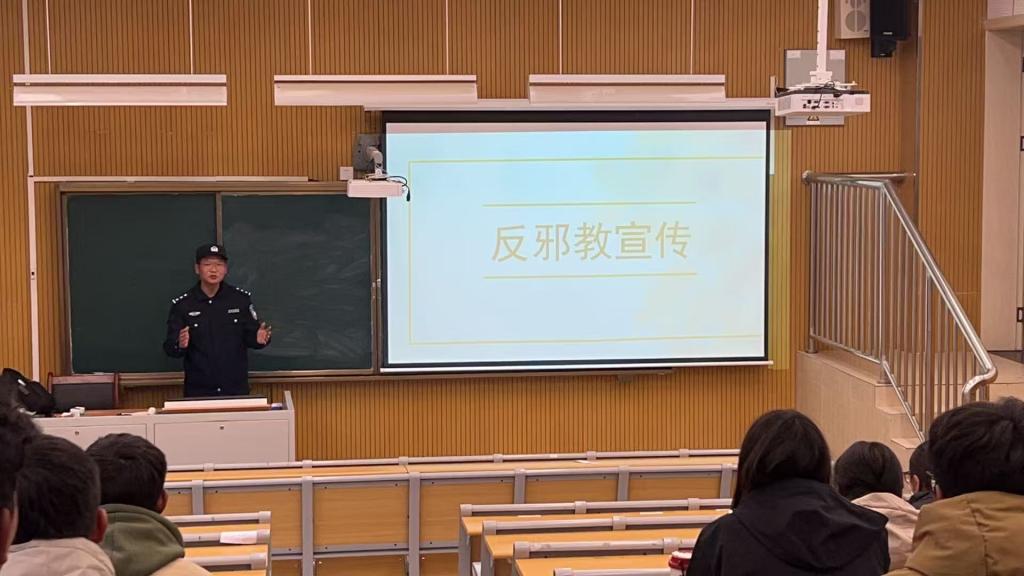 活动中,辖区派出所民警以专题讲座形式,结合多起真实案例深入浅出地揭开了邪教的“伪善面纱”。民警首先明确界定了邪教的定义与特征,指出其常冒用宗教名义,通过制造歪理邪说、渲染迷信思想蛊惑群众的本质。针对高校学生升学压力大、求职焦虑多的群体特点,重点剖析了邪教利用此类心理实施渗透的新型套路;同时,详细讲解识别、抵御邪教的具体方法,告诫同学们面对邪教言论要坚决做到“不听、不看、不传”,一旦发现邪教活动踪迹,第一时间向学校保卫部门或公安机关报告。民警还提醒同学们警惕刷单返利、校园贷等常见诈骗,牢记“不轻信、不透露、不转账”,守护好个人财产安全。