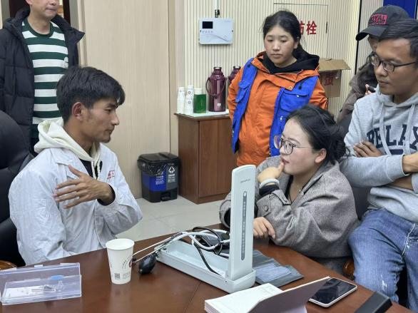 “青春藏医行”志愿服务团队的医生为干部职工提供了基础的藏医诊察服务,如脉诊、问询等,针对个体差异,给予了调理建议。针对应急管理人员因工作任务繁重、久坐办公等导致的肩颈不适问题,团队特别准备了肩颈护具,并详细讲解使用方法和注意事项。