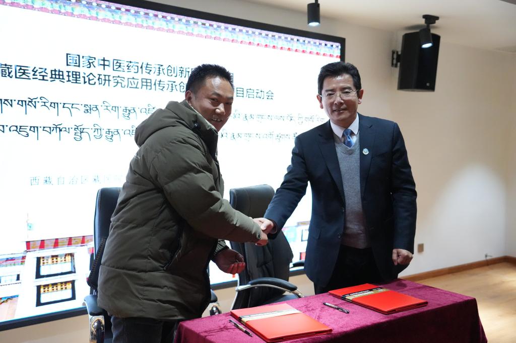 本次启动会于西藏自治区藏医院隆重召开。我校米玛校长出任团队学术委员会副主任,附属医院仁青加院长为团队学术委员;南木加教授担任项目子课题负责人,啊中措副教授、边巴坚参副教授入选核心团队成员。会上,我校与项目牵头单位就"藏医优势病种文献整理与应用研究"正式达成合作签约。此次签约标志着双方在藏医经典理论传承与临床转化领域的协作迈入实质攻坚阶段,将有效推动藏医经典理论与现代临床实践的深度融合,赋能藏医药诊疗体系提质升级。
