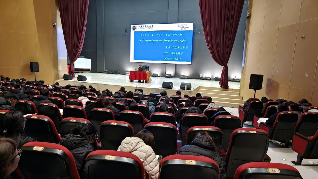 为深化藏医药专业人才培养,助力学生提升临床诊疗能力,2025年11月28日下午,继续教育部依托藏医药专业能力提升项目,特邀次旦多吉教授开展专题讲座。继续教育部、藏医系、藏药系等部门400余名本专科学生参加讲座。