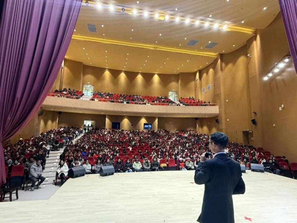随后,在热烈的掌声中,尼玛旺堆老师登台,展开了震撼人心的励志演讲。他以“不同命运的我”为核心,全景式的讲述了自己的传奇历程。他不仅是思想的启迪者,更是行动的巨人。从2025年拉萨半程马拉松的赛道,到清华大学、哈佛大学等世界知名学府的讲台,都留下他坚实的足迹与深远的声音。尼玛旺堆老师结合自身经历,将“苦难是人生的老师”这句话诠释得淋漓尽致。他的演讲无关怜悯,而关乎力量;不只为倾听,更为激发。